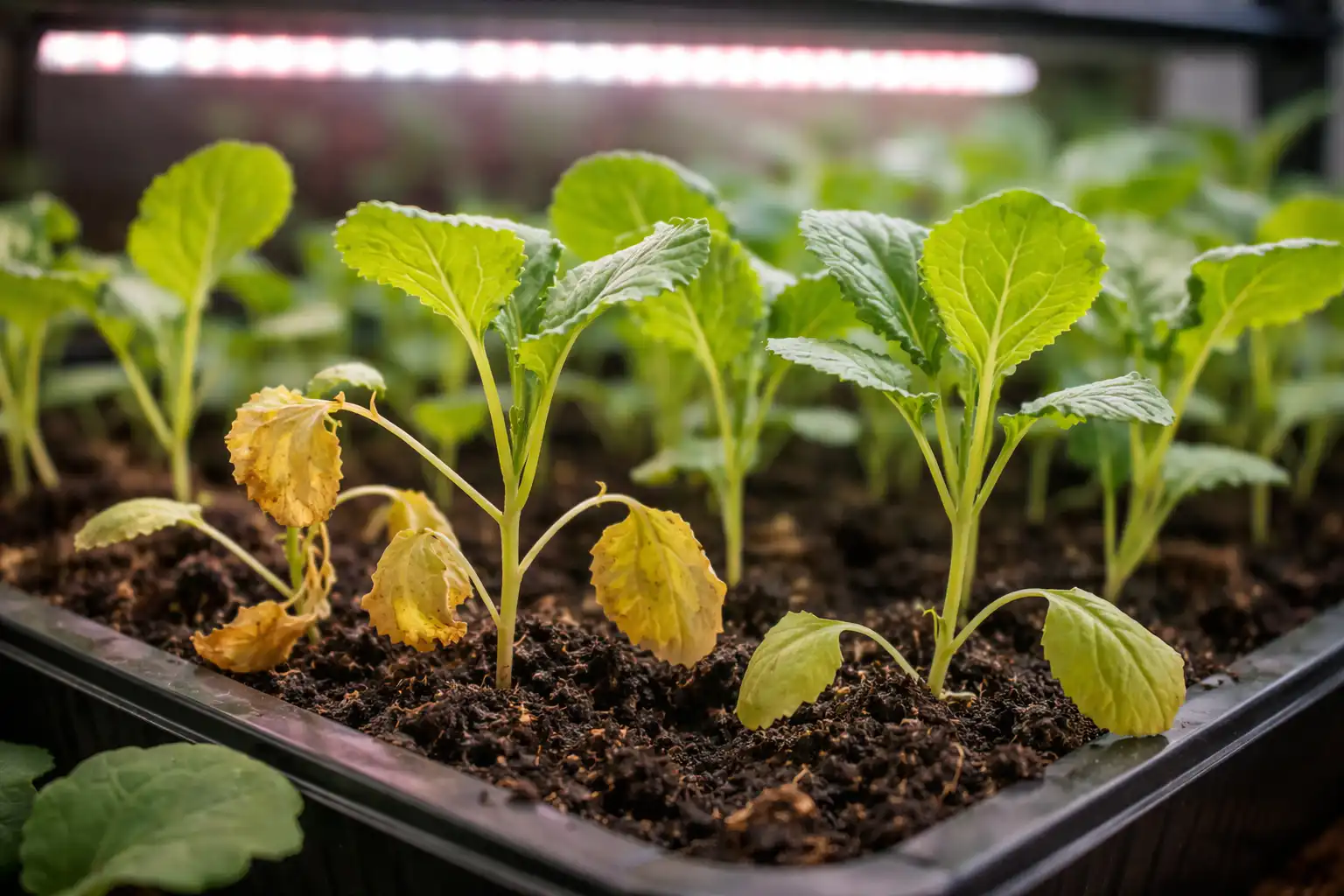 Mnogi vrtlari suočeni su s činjenicom da jake sadnice kupusa iznenada počinju gubiti turgor i sušiti se, iako se zalijevanje provodi na vrijeme. Glavni razlog leži u kršenju fotosinteza i isparavanje vlage kada biljci jako nedostaje kvalitetna rasvjeta. Bez ultraljubičastog svjetla stabljika se rasteže, postaje krhka, a korijenski sustav prestaje opskrbljivati lišće prehranom.